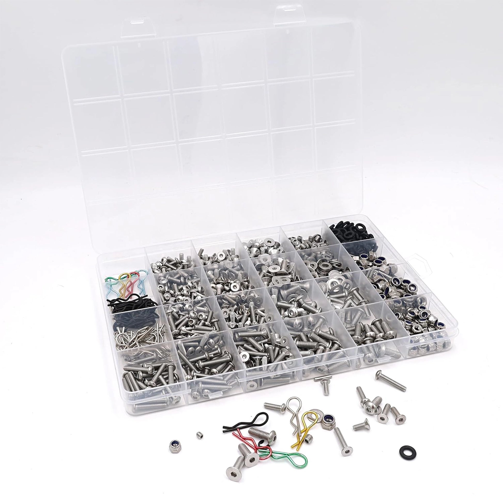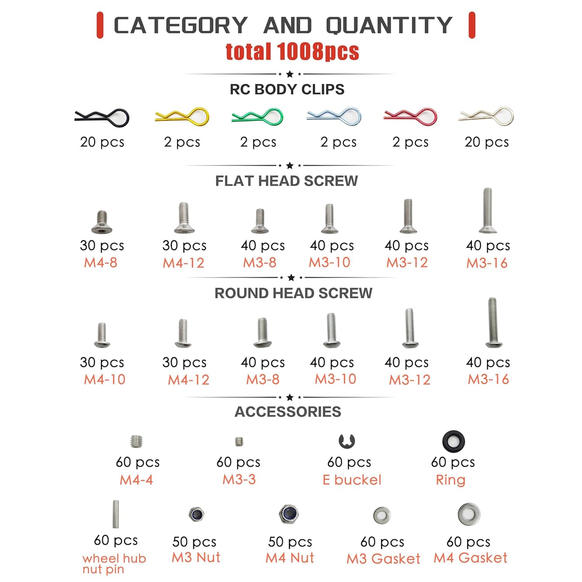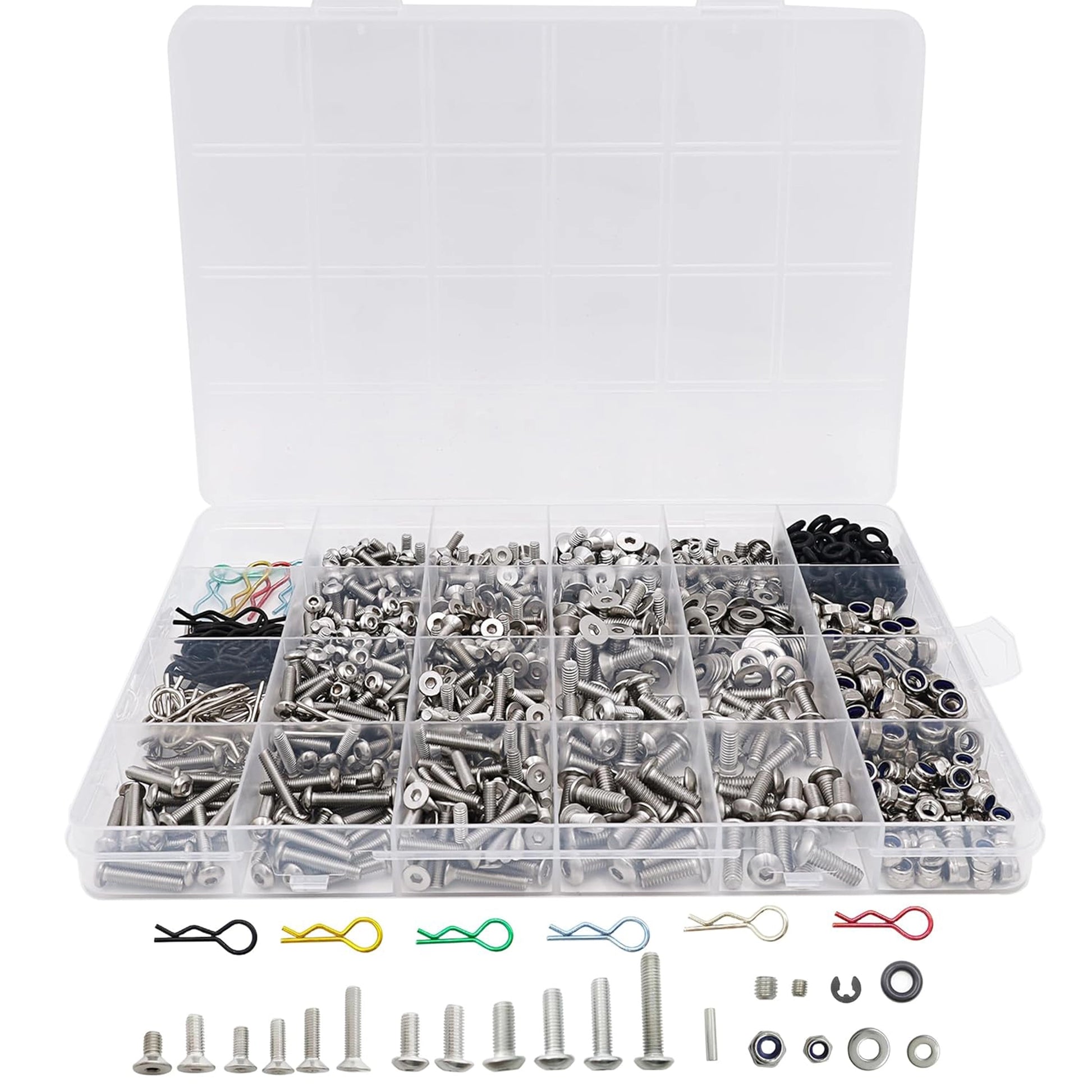 1008PCS Universal RC Screw Kit 304 Stainless Steel for Traxxas Axial Redcat HPI Arrma SCX10 Losi 1/8 1/10 1/12 1/16 Scale RC Cars