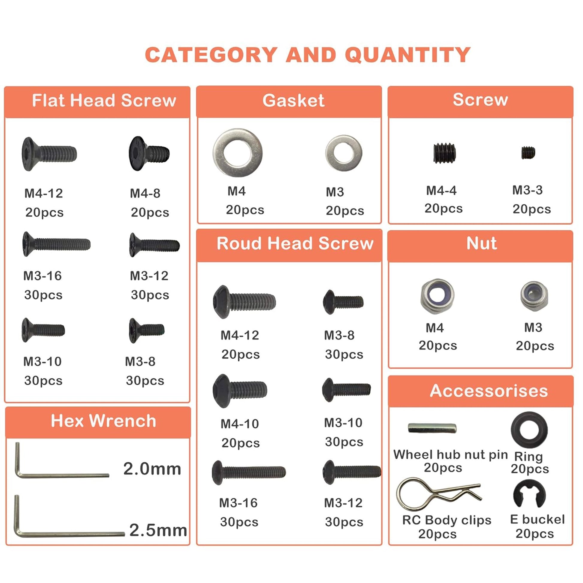 522PCS RC Screws Kit Hardware Fasteners RC Spare Accessories for Traxxas Tamiya Axial Redcat HPI SCX10 Losi 1/8 1/10 Scale RC Cars