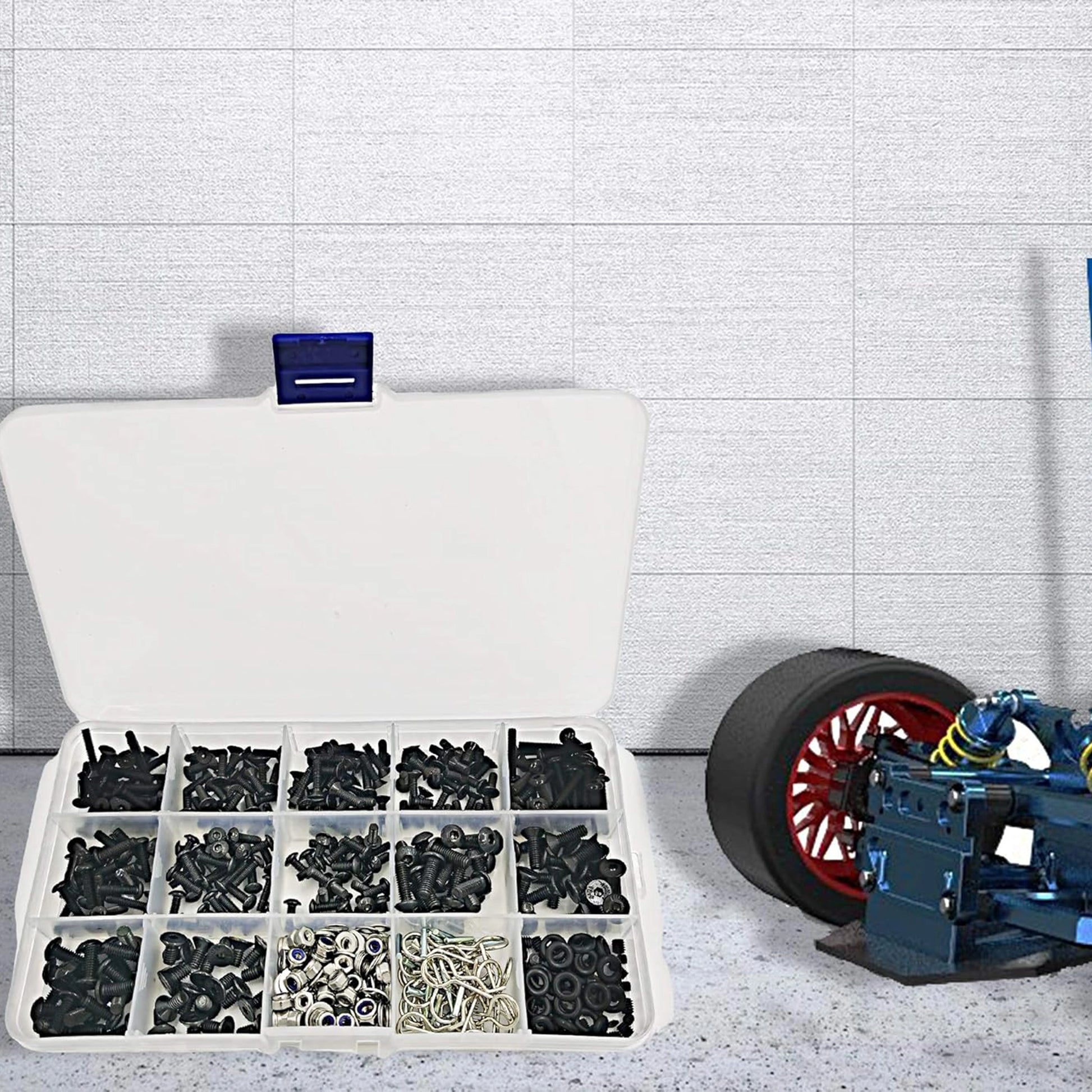 522PCS RC Screws Kit Reapir Tool Box Set Hardware Fasteners RC Hobby Universal Spare Accessories for Traxxas Tamiya Axial Redcat HPI SCX10 Losi 1/8 1/10 Scale RC Cars Crawler Parts