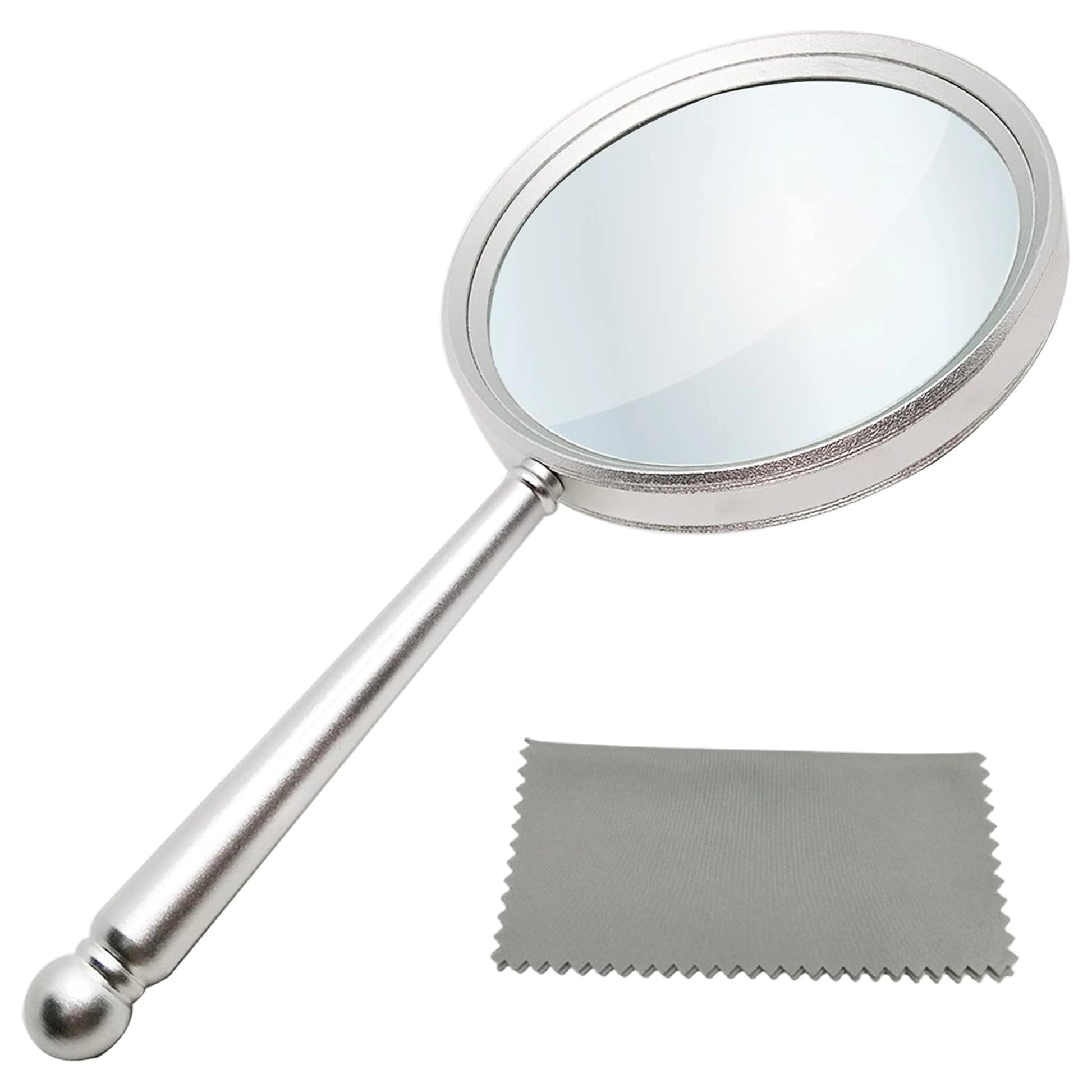 RAFLOT Handheld Magnifying Glasses Metal Handle & 84mm Large Magnifying Real Glass Lens