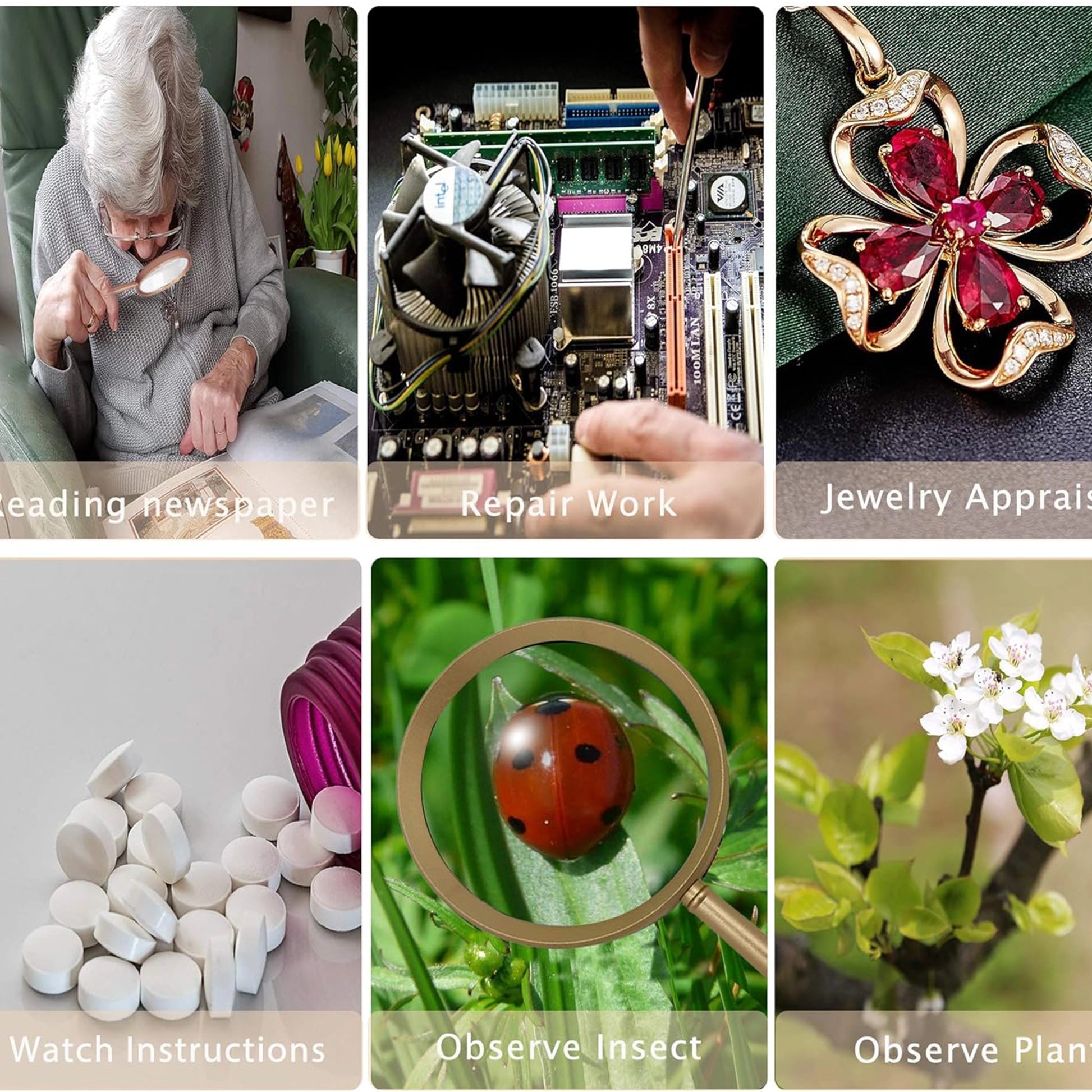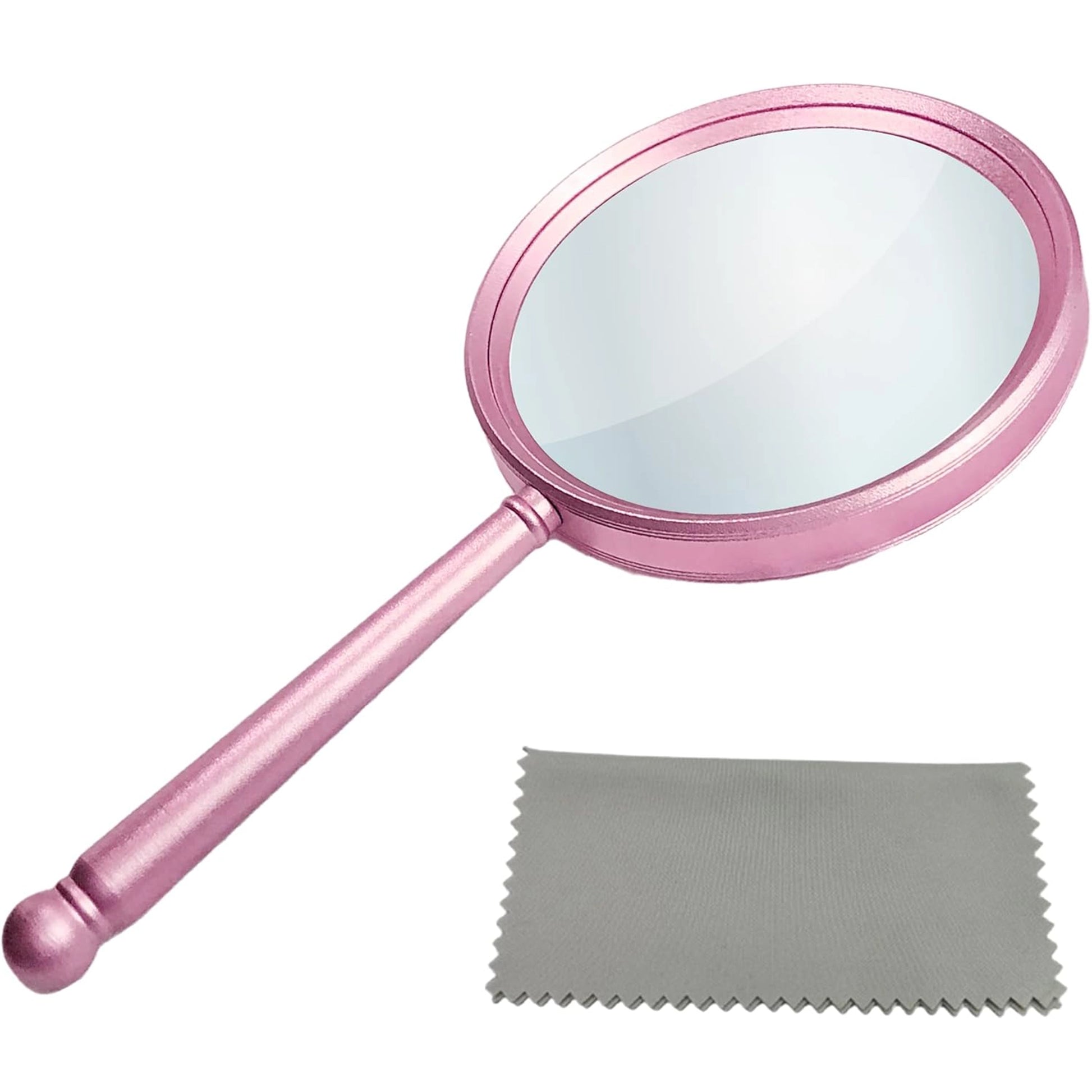 RAFLOT Handheld Magnifying Glasses 5X Reading Magnifier with Shatterproof Metal Handle & 84mm Large Magnifying Real Glass Lens for Seniors and Kids Repair and Observation