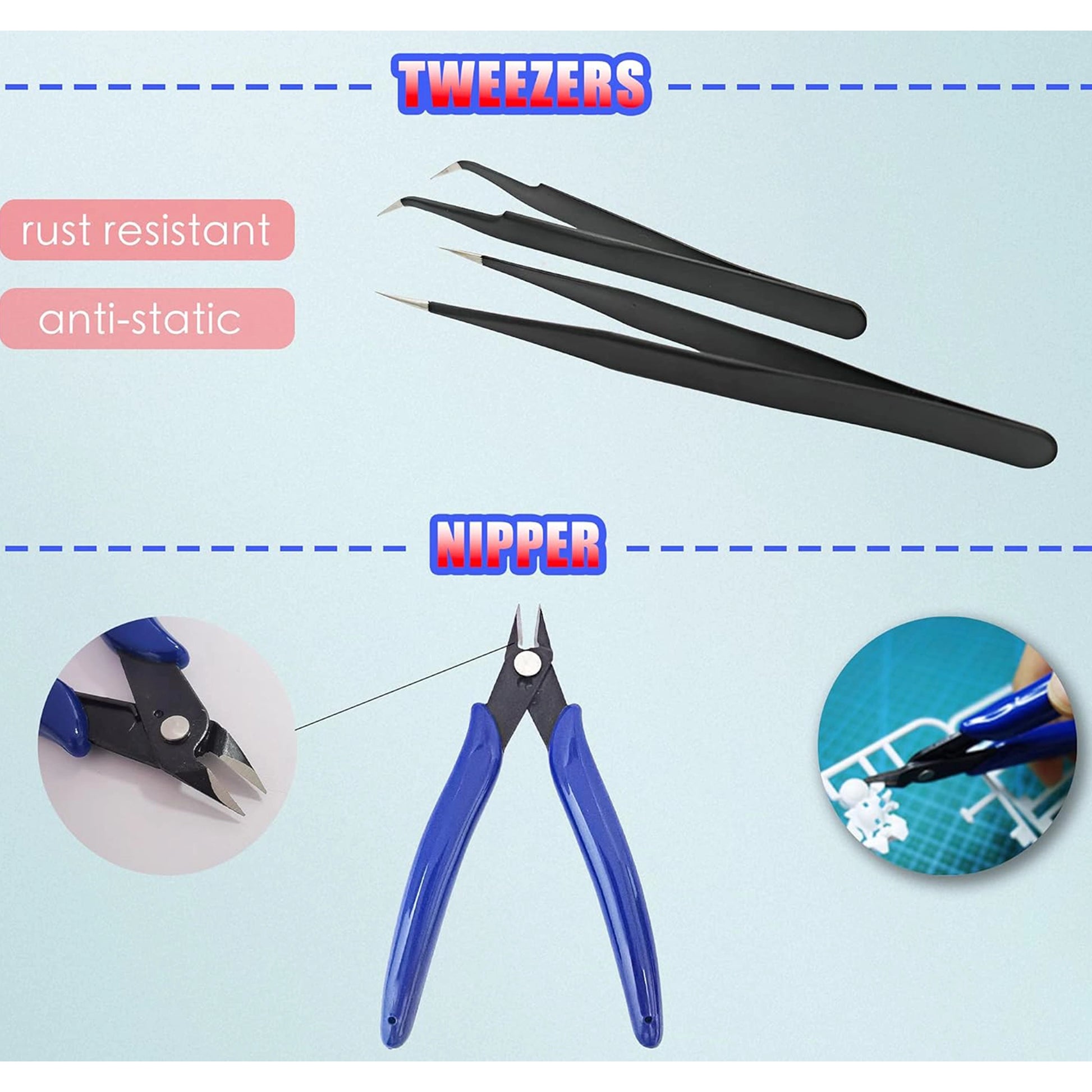 Raflot Hobby Building Tools Set 20 in 1 Model Tools Kit Basic Tools with Nippers Tweezers Needle Files Polishing Bars for Car Airplane Model Building Repairing and Fixing