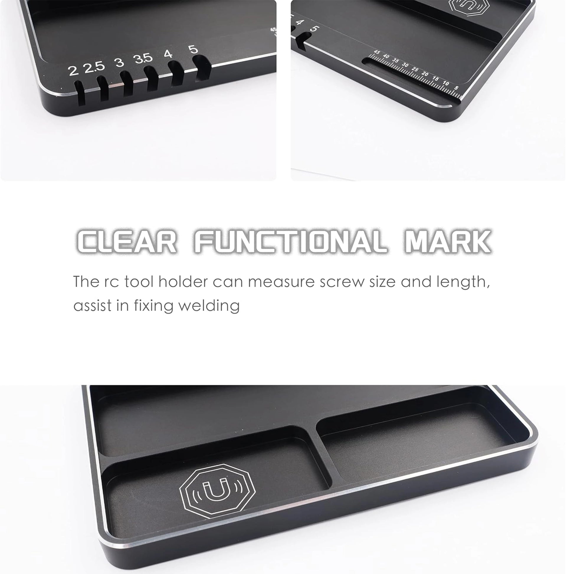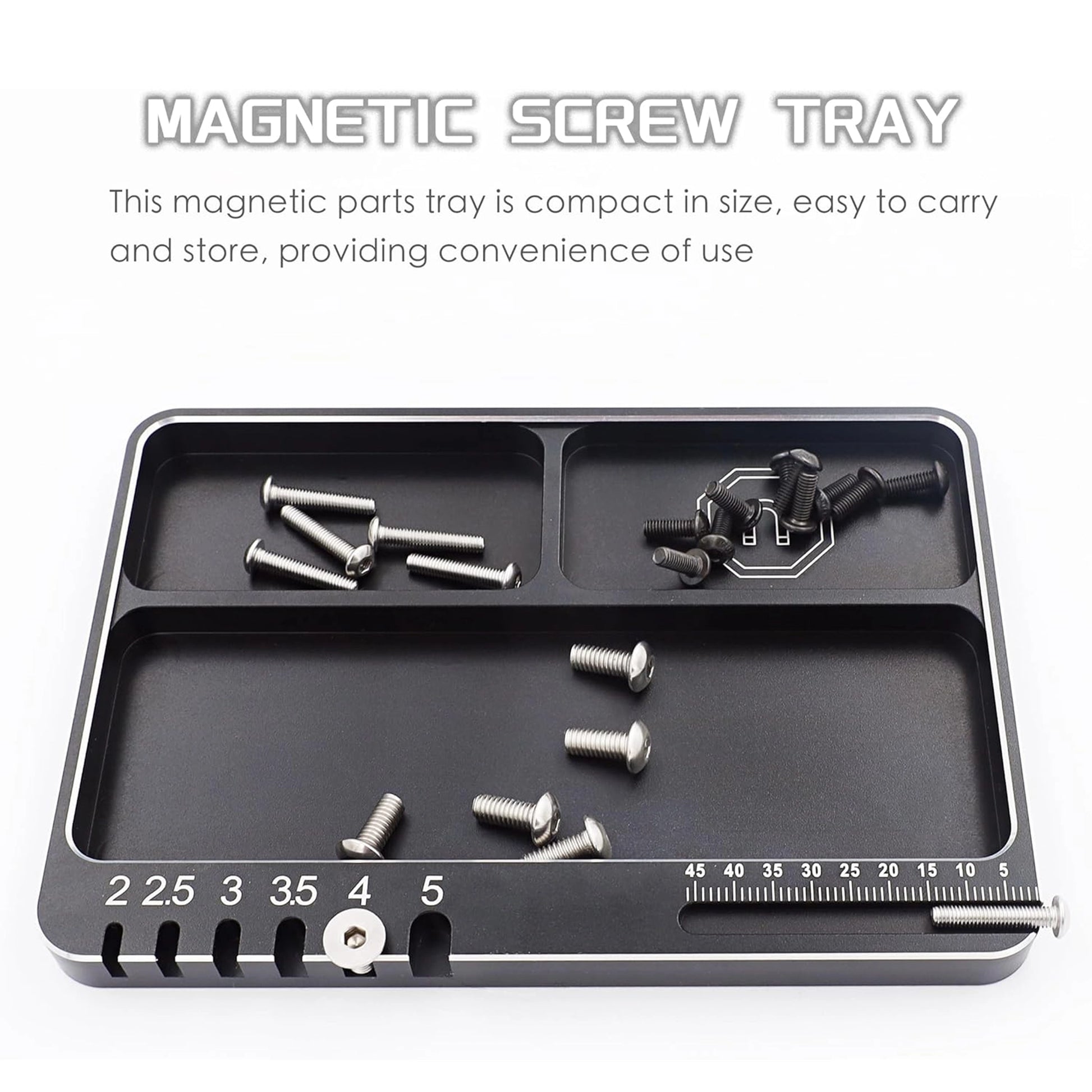 Raflot RC Magnetic Tray High Strength Aluminium Alloy Magnetic Screw Tray with Magnetic Pad for RC Model Toy Repair Magnetic Mat Electronic Repair Kit Tool Organizer