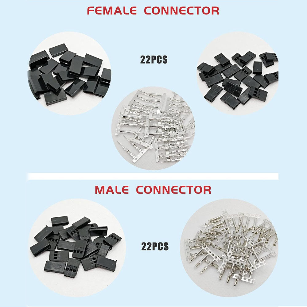 【Exquisite Workmanship】 All connectors and terminal manufactured with precision-fitting and durability ensuring accurate mating. The servo connector is 2.54mm pin spacing and the red connector is 2.5mm pin spacing